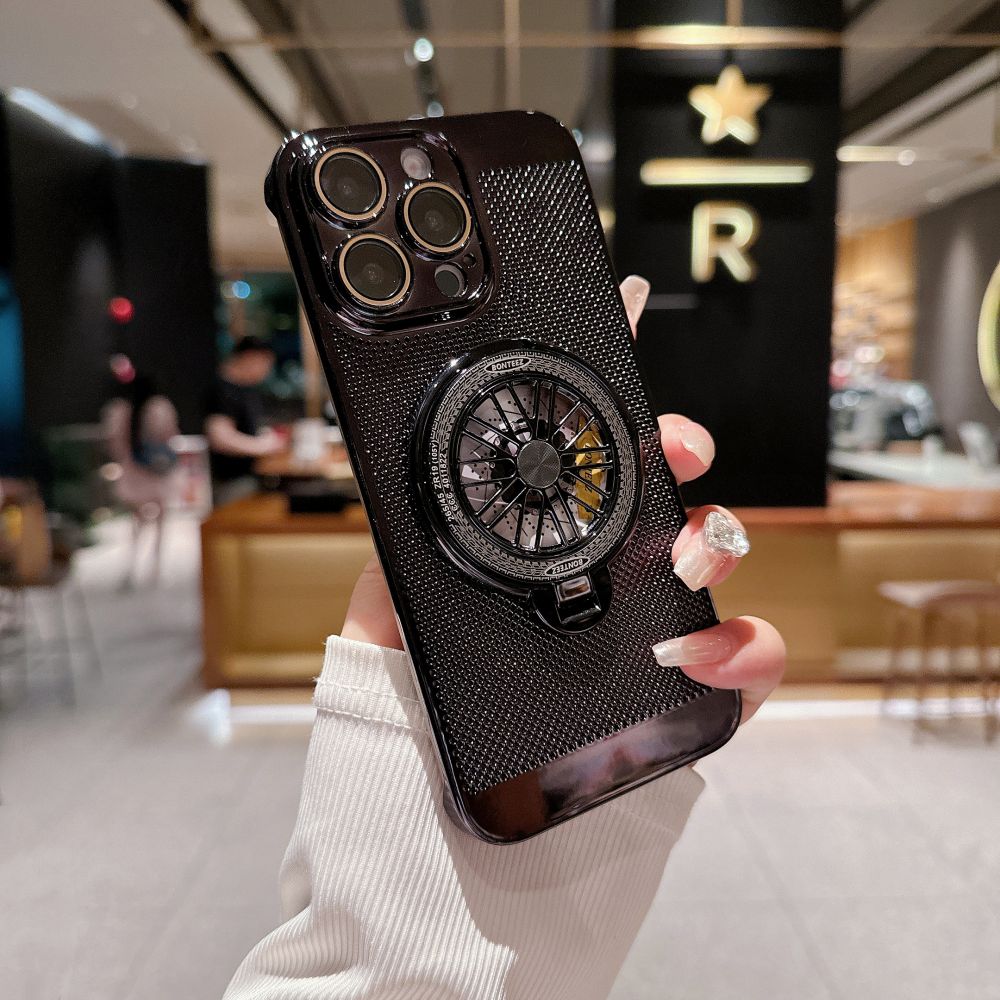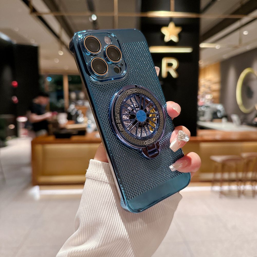 Stay cool with the Lustrous Rotating Wheel Stand Case. Designed for optimal heat dissipation, the rotating wheel keeps your phone cool during intense use. Its sleek, durable design offers both style and protection, guarding against drops and scratches while enhancing your device’s look.